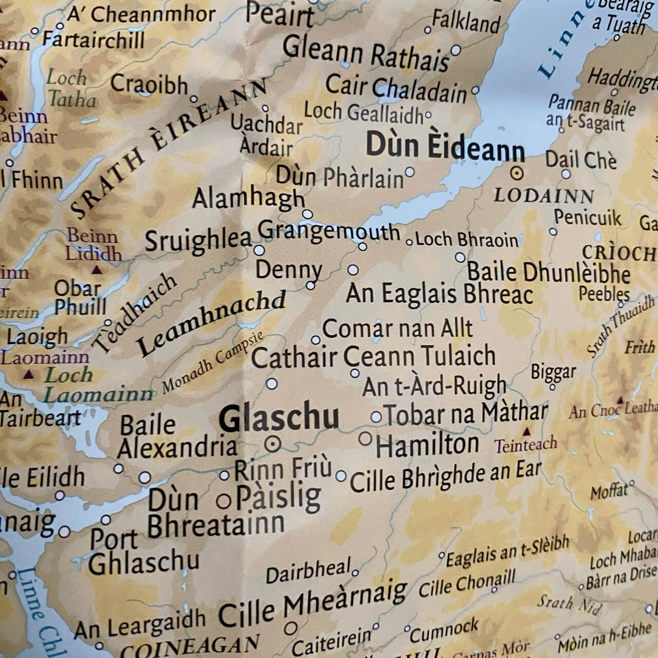 Map of Scotland & Ireland in Gaelic & Irish: St. Columba’s Land